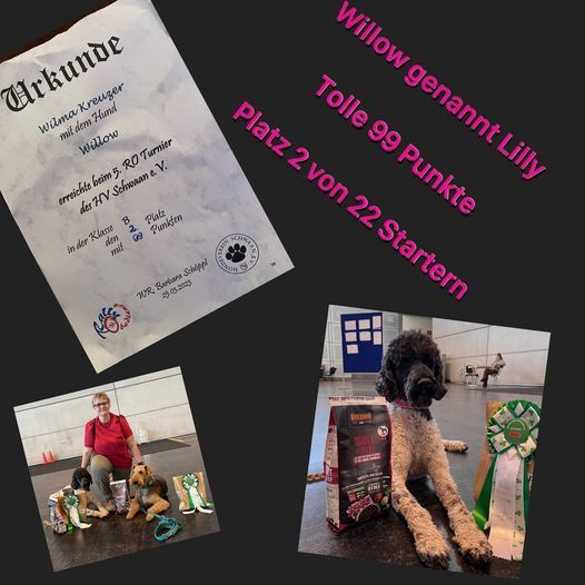 Am 03.09.2023 haben Lilly und ich im Rally Obedience ( Klasse Beginner ) einen Hervorragenden 2.Platz ( 32 Starter ) mit 100 Punkten in Greifswald geschafft. Danke an die tollen Ausbilder von Schwaan, danke an die Richterin Bettina Flöter, danke an alle die mich unterstützen ich hab euch lieb. Mein größter Dank gilt aber meinen fantastischen Hunden, die mich trotz meiner Macken bedingungslos lieben. Ihr seid die Besten
